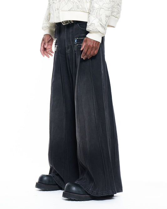 Pleated Black Denim
